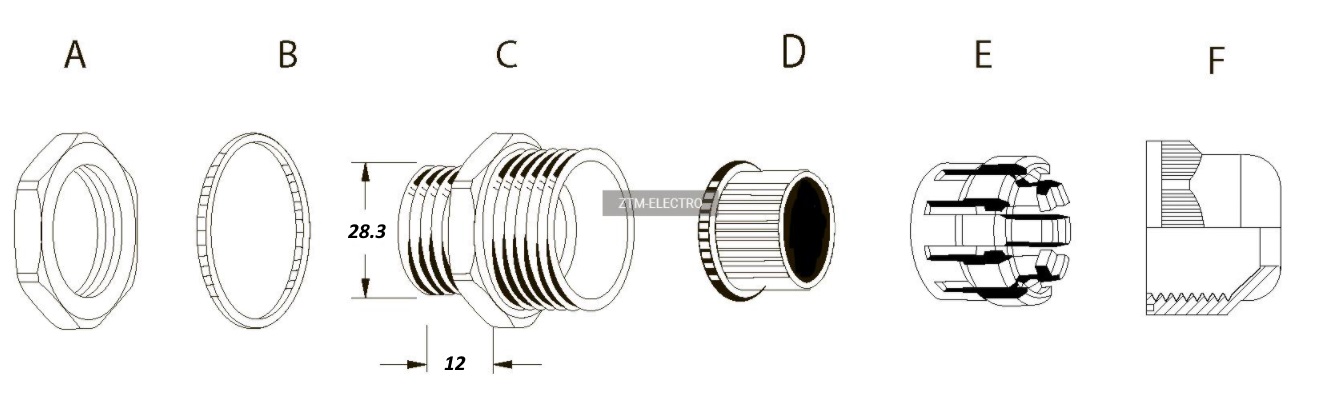 | Наименование | PBA21-16 12-16 mm Кабельный ввод(гермоввод), сальник металл |