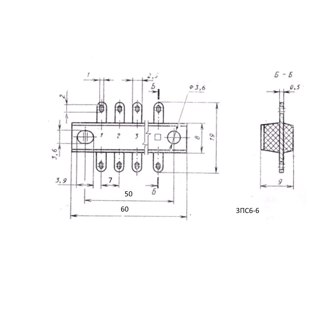 | Транслитерация | 3PS6-6 6 pairs, 2 rows, 12 contacts, 7mm pitch, 8A(Ampere) 600V(Volt) Connecting board carbolite, GOST 28821-90 |