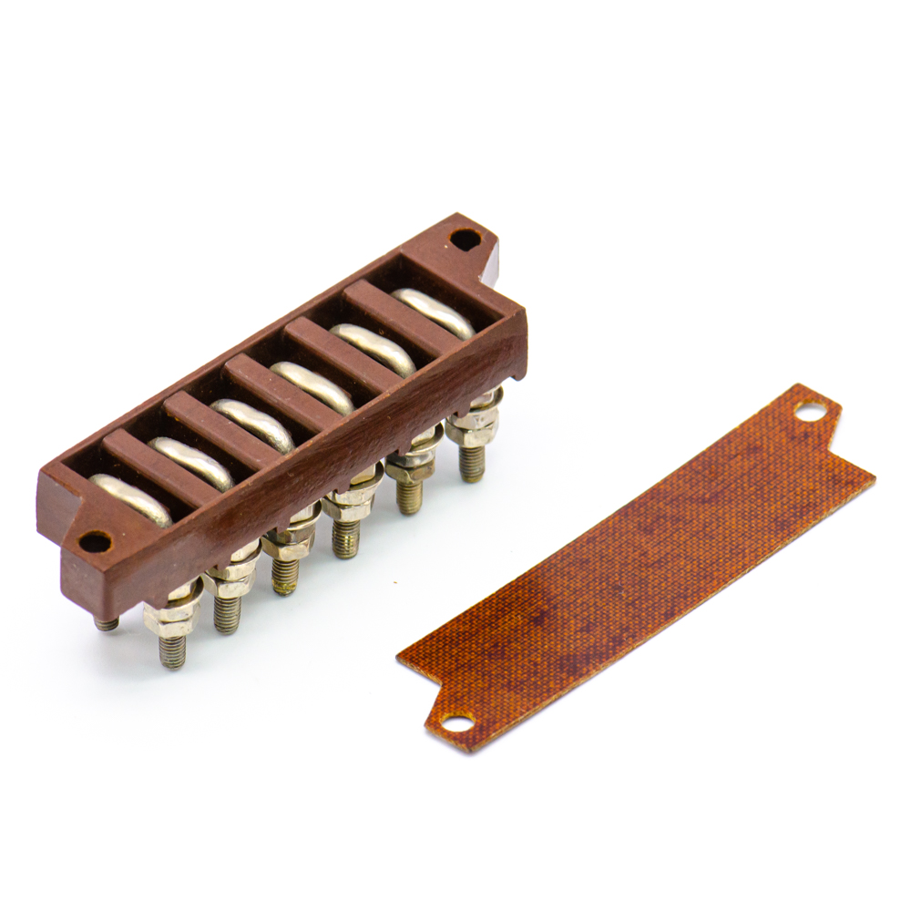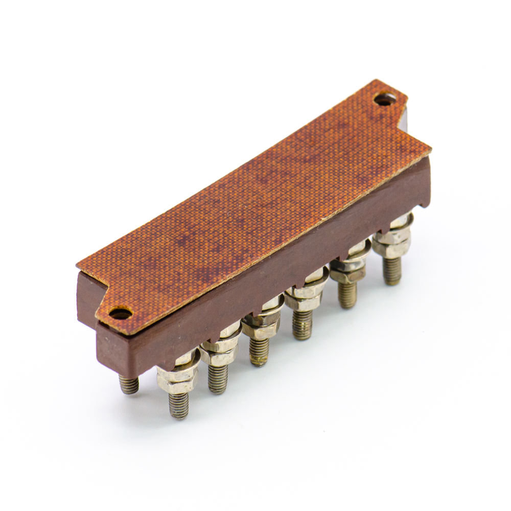 | Наименование | ПС5-6 6 пар, 2 ряда,12 контактов, шаг 9mm, 20A(Ампер) 600V(Вольт), Плата соединительная, карболит |