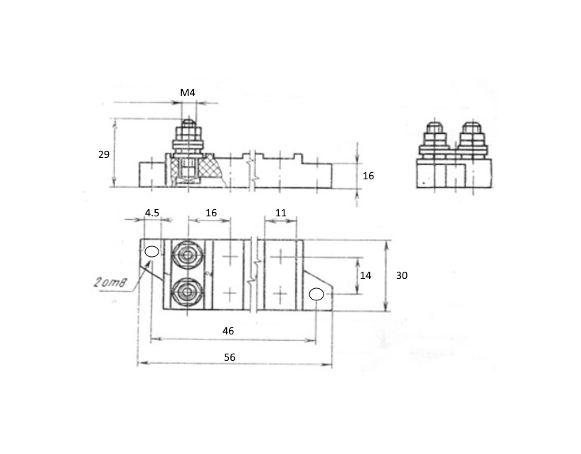 | Наименование | ПК-2 2 пары, 2 ряда, 4 контактов, шаг 16mm, Плата клеммная, карболит |