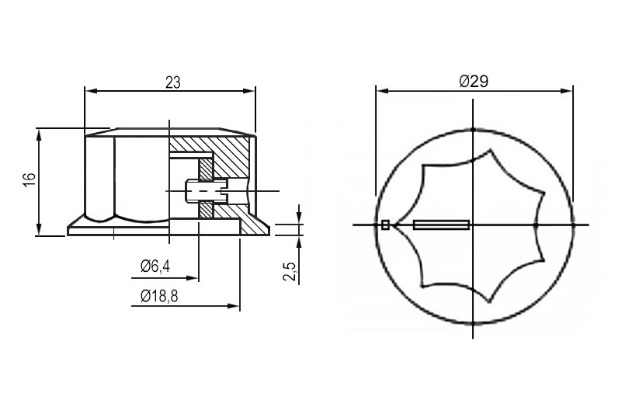 | Наименование | MF-B02 Ручка приборная, D29мм, отв. 6мм, с лыской, RUICHI |
