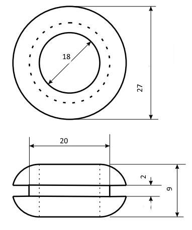 | Наименование | Втулка 18х27х20х9х2 проходная черная, резина EPDM, Ruichi |