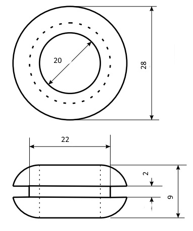 | Наименование | Втулка 20х28х22х9х2 проходная черная, резина EPDM, Ruichi |