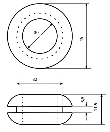 | Наименование | Втулка 30х45х32х11.5х3.5 проходная черная, резина EPDM, Ruichi |