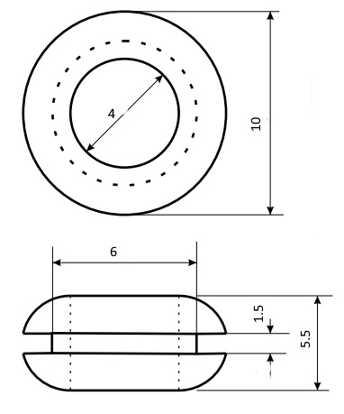 | Наименование | Втулка 4х10х6х5.5х1.5 проходная белая, резина EPDM, Ruichi |