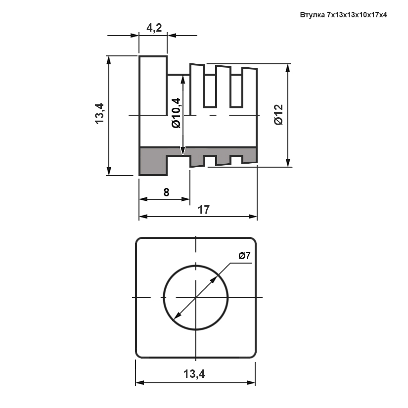 | Транслитерация | Втулки 7х13х13х10х17х4 проходная черная, резина EPDM, Ruichi. |