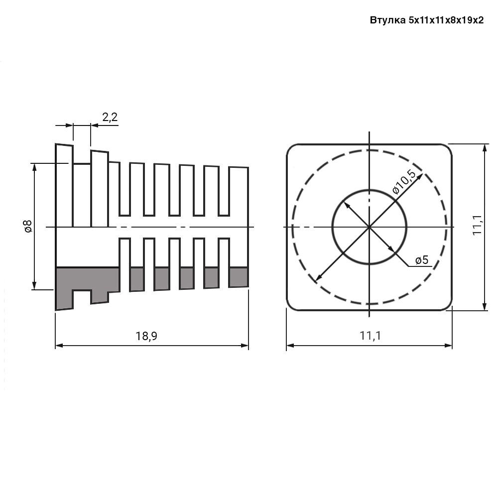 | Наименование | Втулки 5х11х11х8х19х2 проходная белая, резина EPDM, Ruichi. |