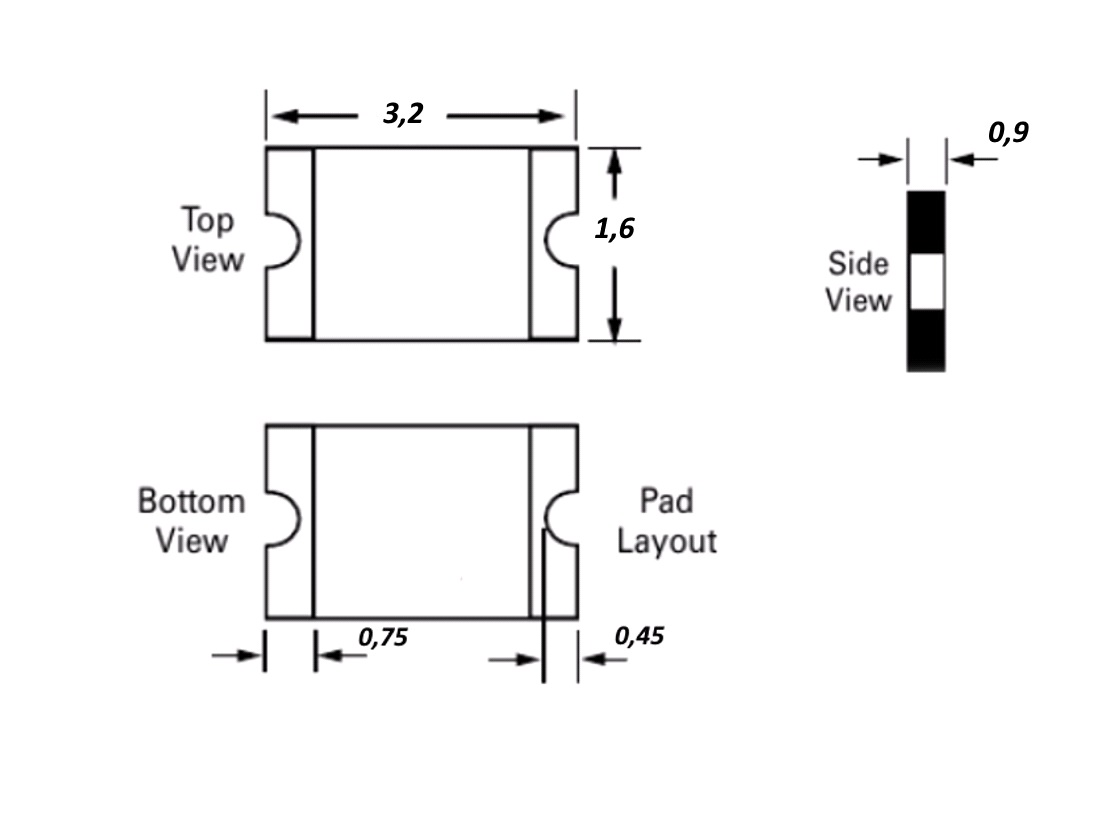 | Габаритные размеры L*W*H | 3,2х1,6х0,9 mm |