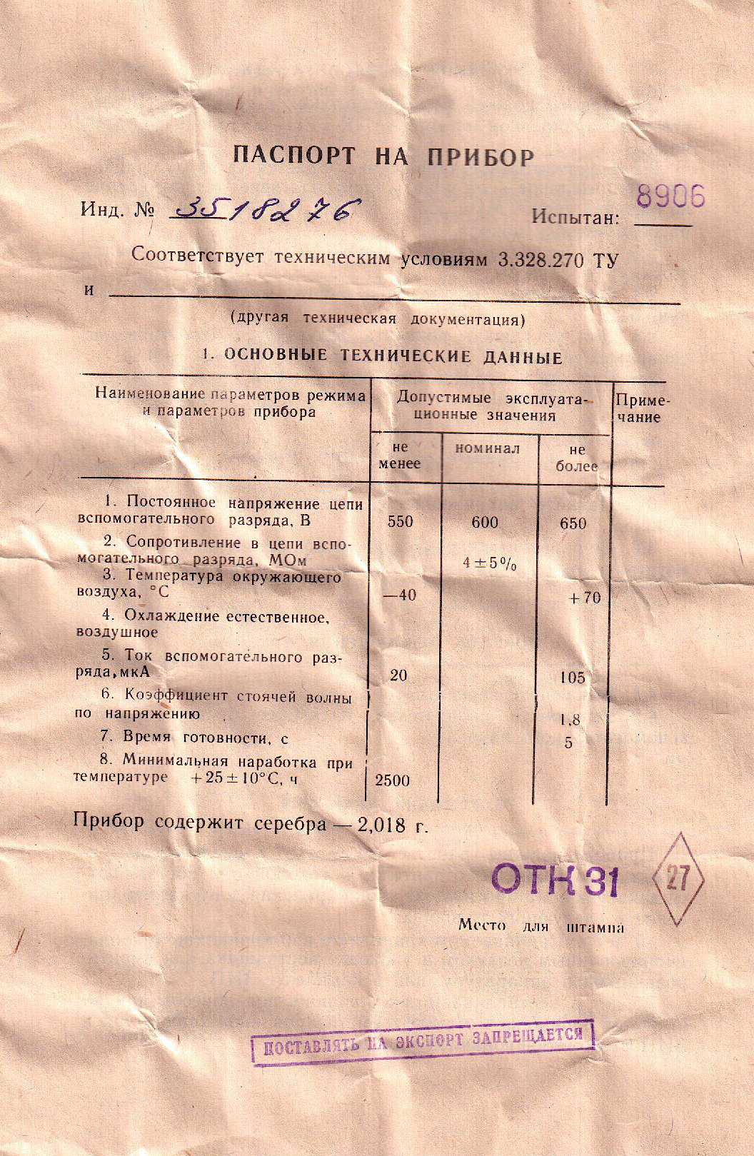 | Нормы и требования | ЯИ3.328.270 ТУ |