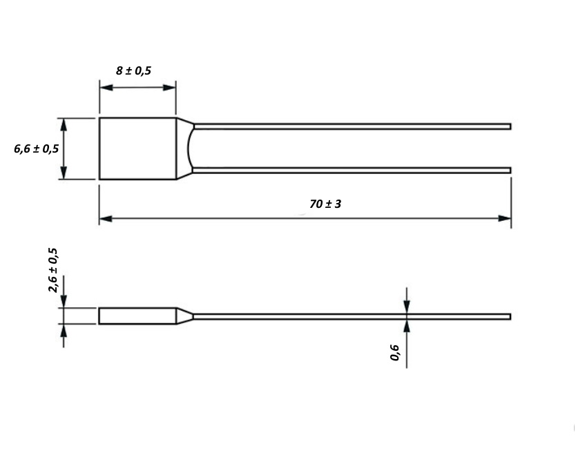 | Габариты корпуса термопредохранителя | 6,6х2,6х8 mm |